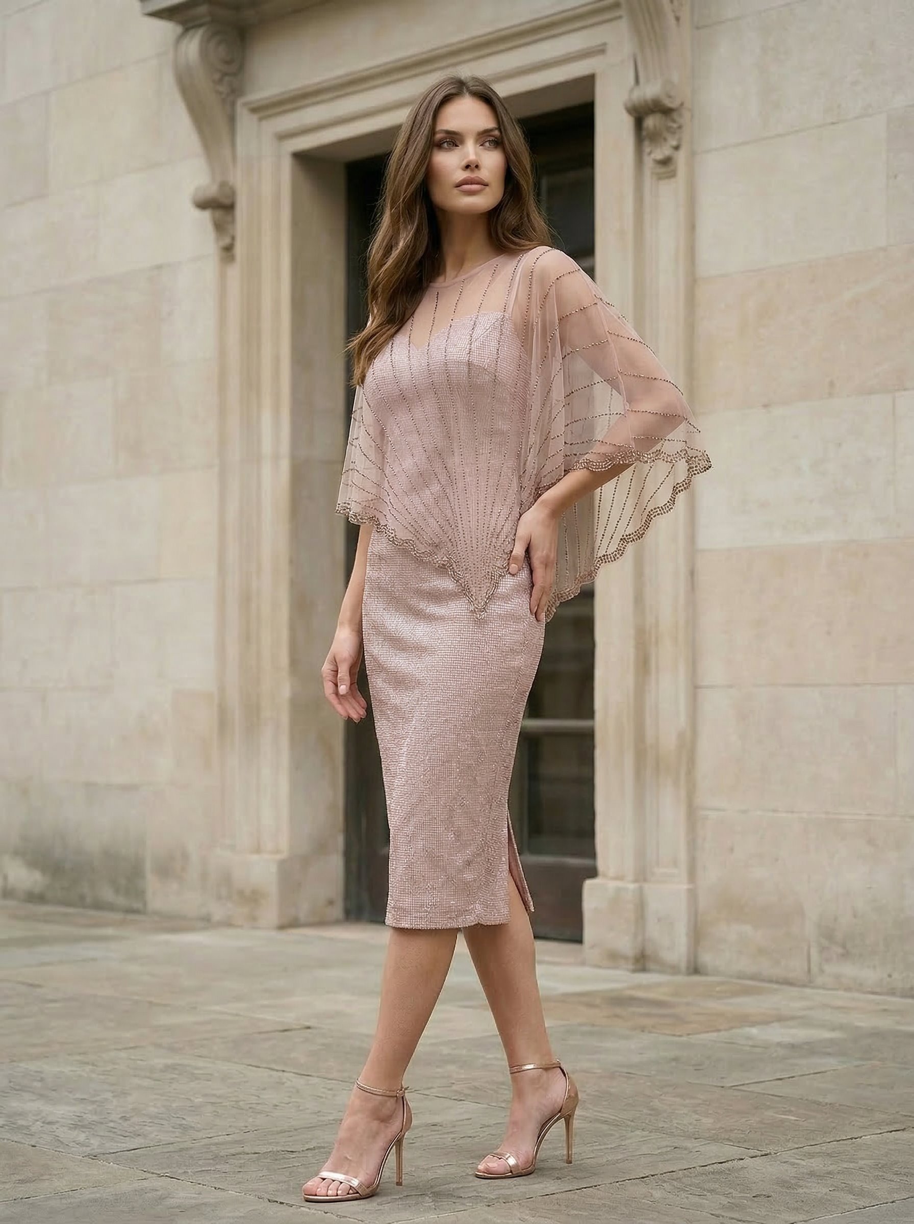 BŁYSZCZĄCA SUKIENKA Z NARZUTKĄ D2-114