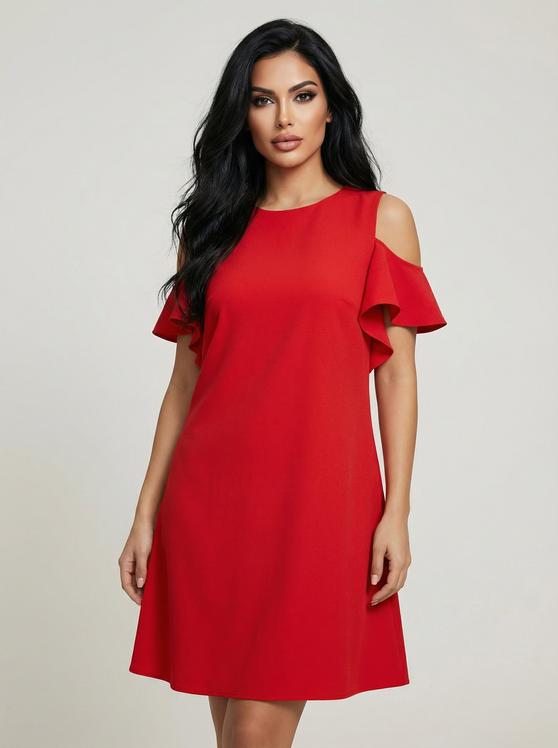 CZERWONA SUKIENKA Z FALBANKAMI D2-46