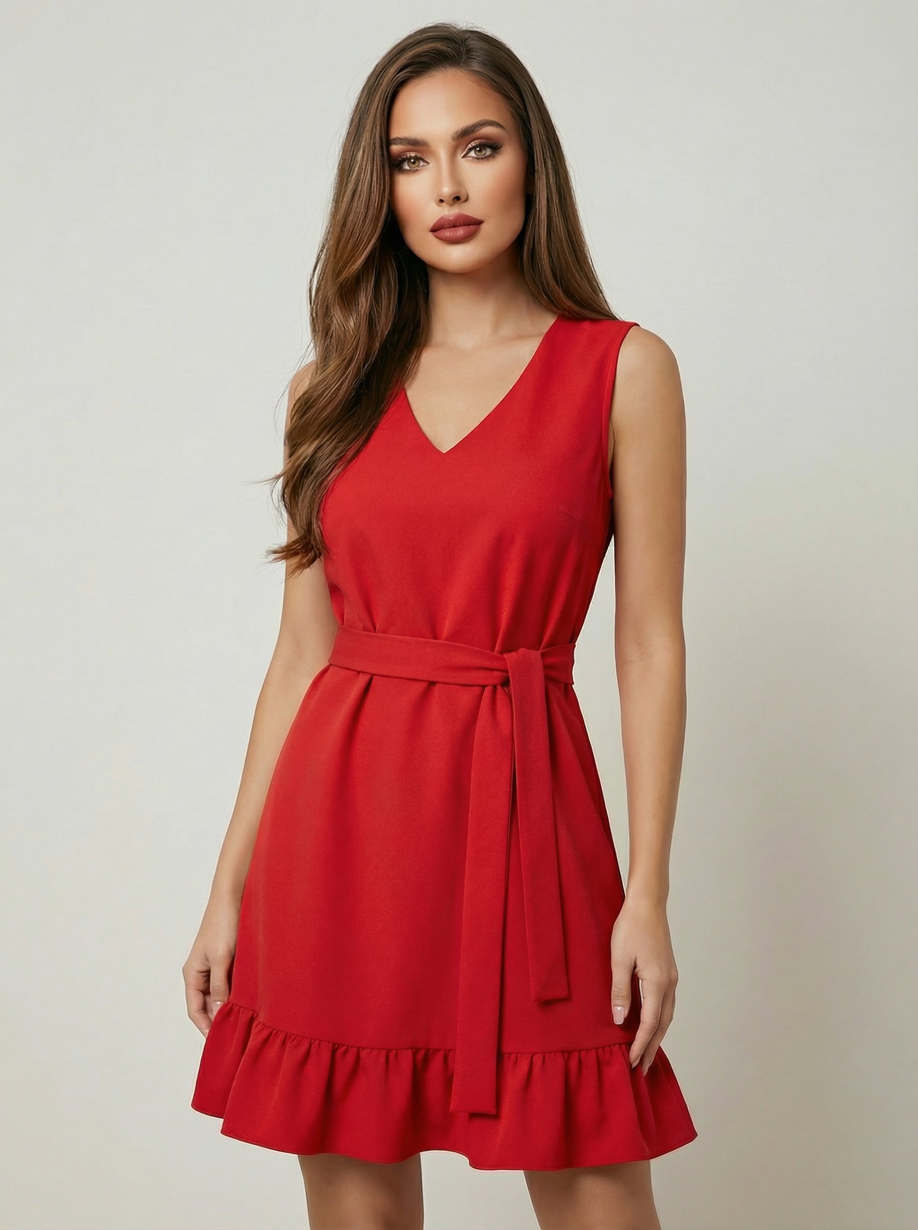 CZERWONA SUKIENKA Z PASKIEM D2-170