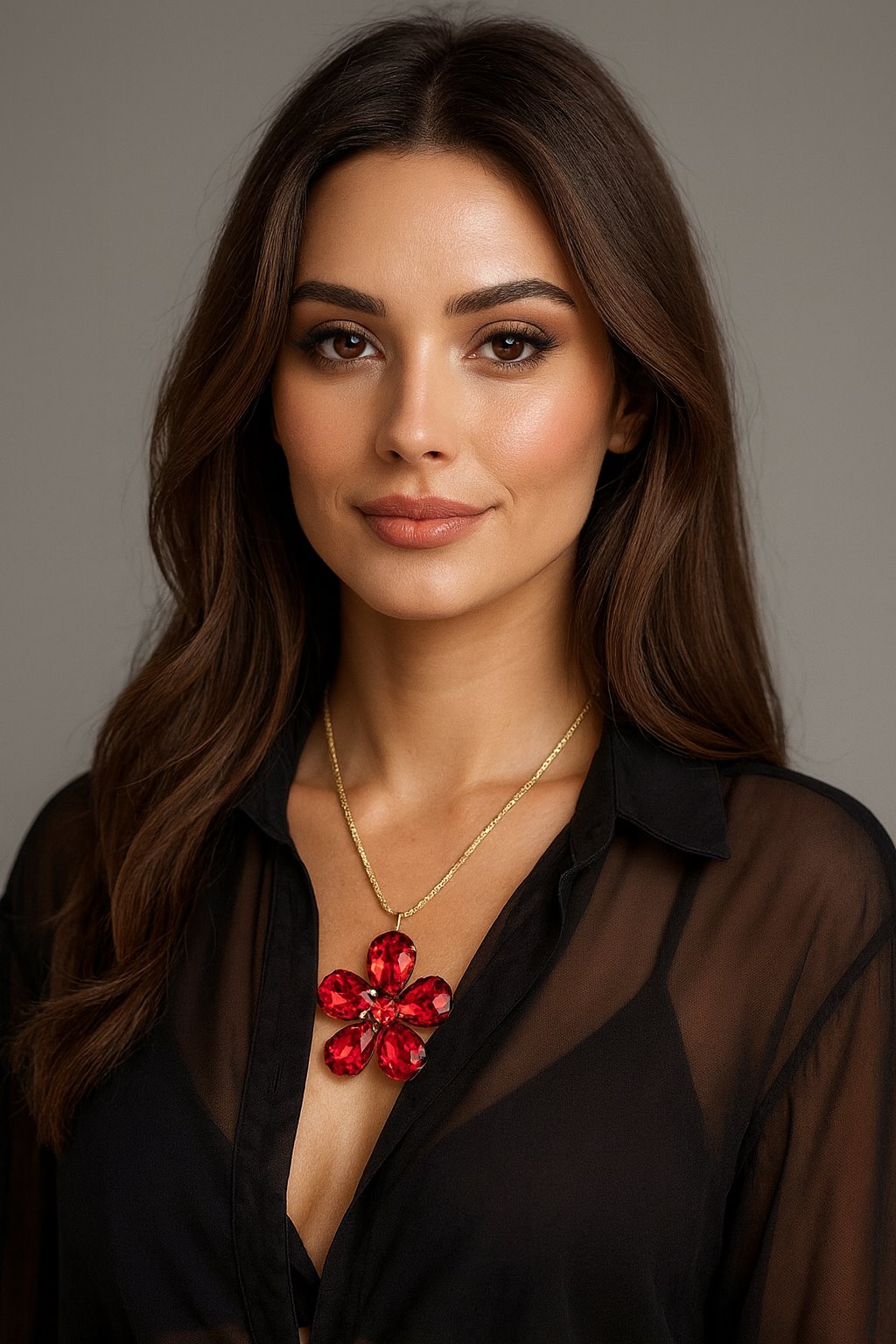 Efektowny wisiorek z dużym czerwonym kwiatem z kryształów to biżuteria dla odważnych kobiet, które lubią wyraziste dodatki. Intensywna czerwień kryształów na złotym sznurku tworzy spektakularną kompozycję, która natychmiast przyciąga wzrok.