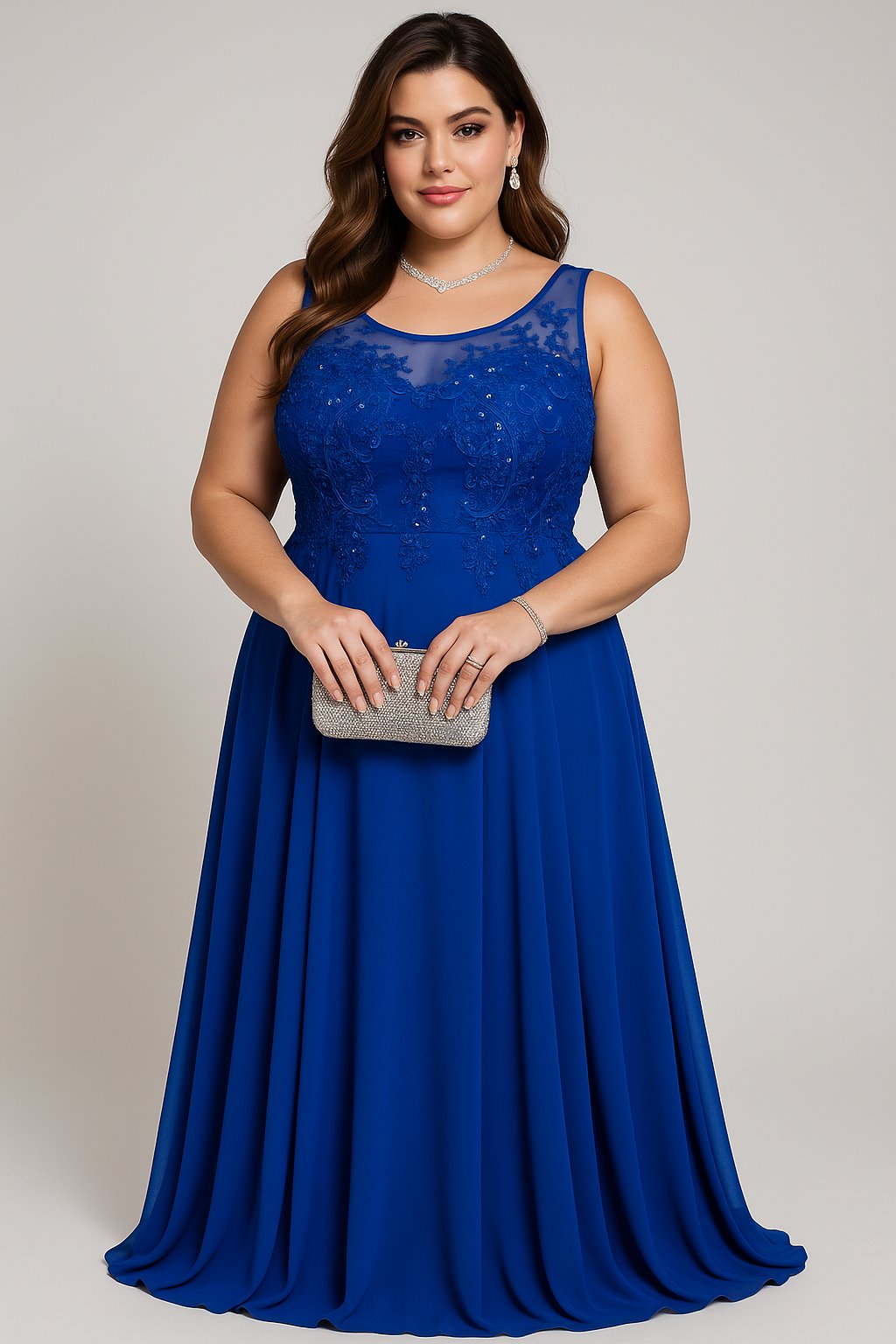 Elegancka sukienka plus size z koronką łączy stabilność i wygodę w wersji maxi. Okrągły dekolt harmonizuje proporcje, a szerokie ramiączka zapewniają komfort przez cały wieczór. Podszewka dba o miękkie otulenie, a rozkloszowany dół pięknie prezentuje się w tańcu. To pewny wybór na przyjęcia, komunie i wesela.