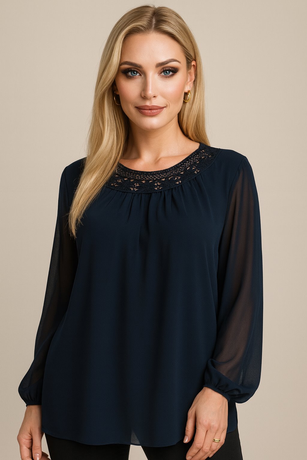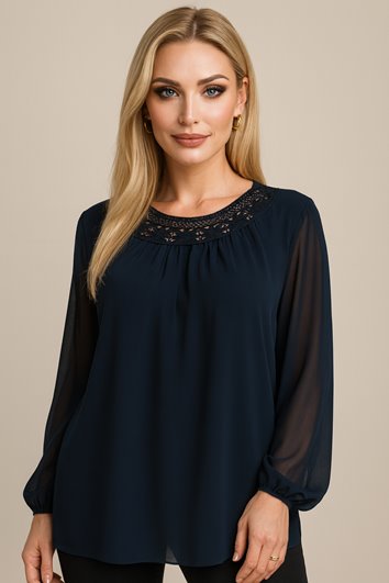 GRANATOWA BLUZKA Z DEKORACYJNYM DEKOLTEM D11-35