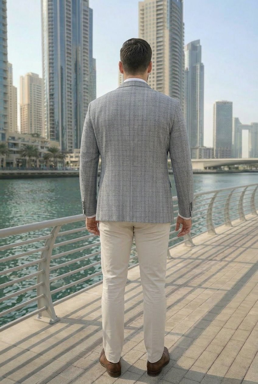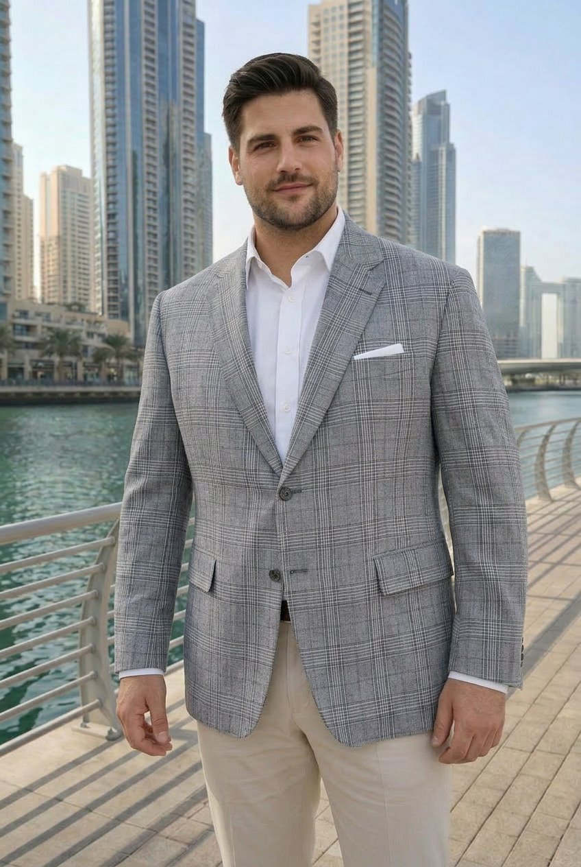 - Stylowa jasnoszara marynarka w kratę PLUS SIZE z bawełny i lnu to idealne połączenie elegancji i lekkości, które zapewnia komfort noszenia i świetny wygląd w każdej sytuacji – od spotkań biznesowych po letnie wyjścia.