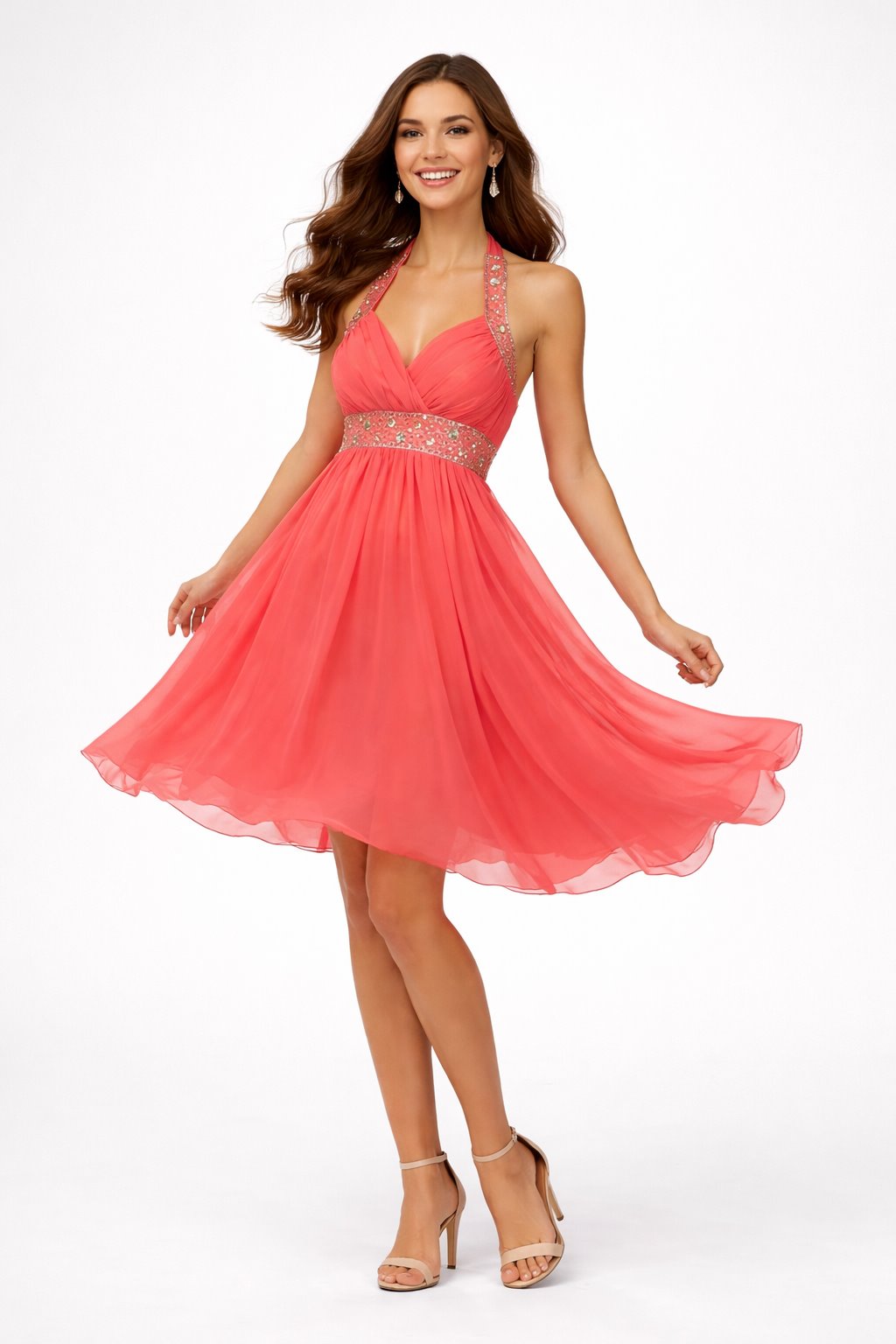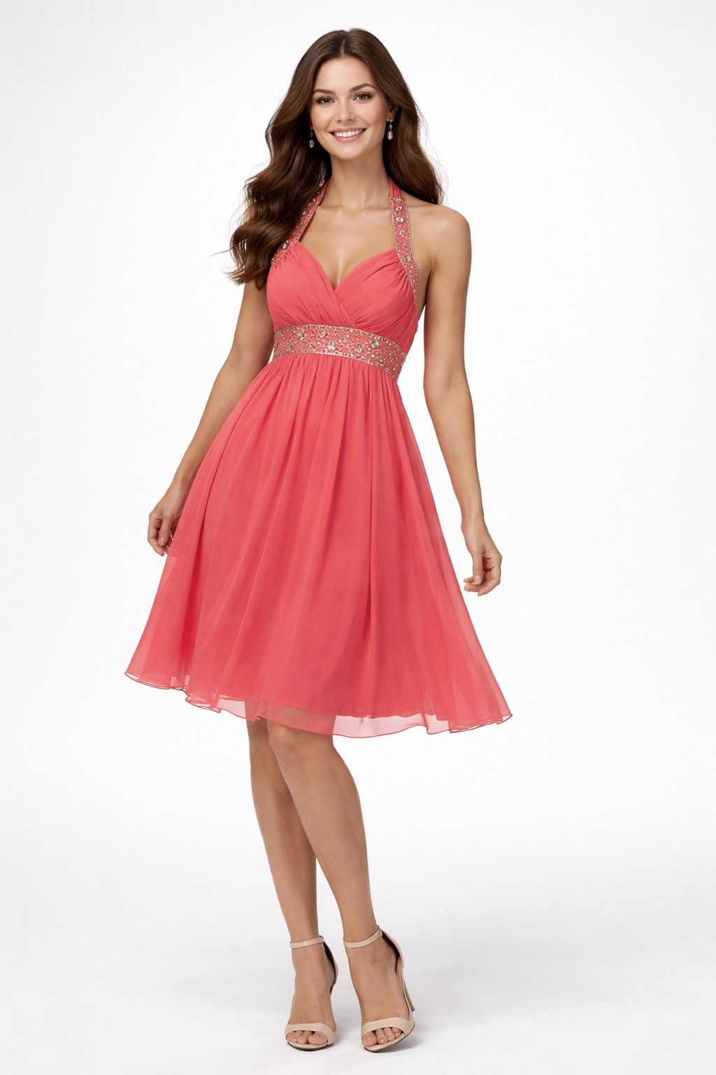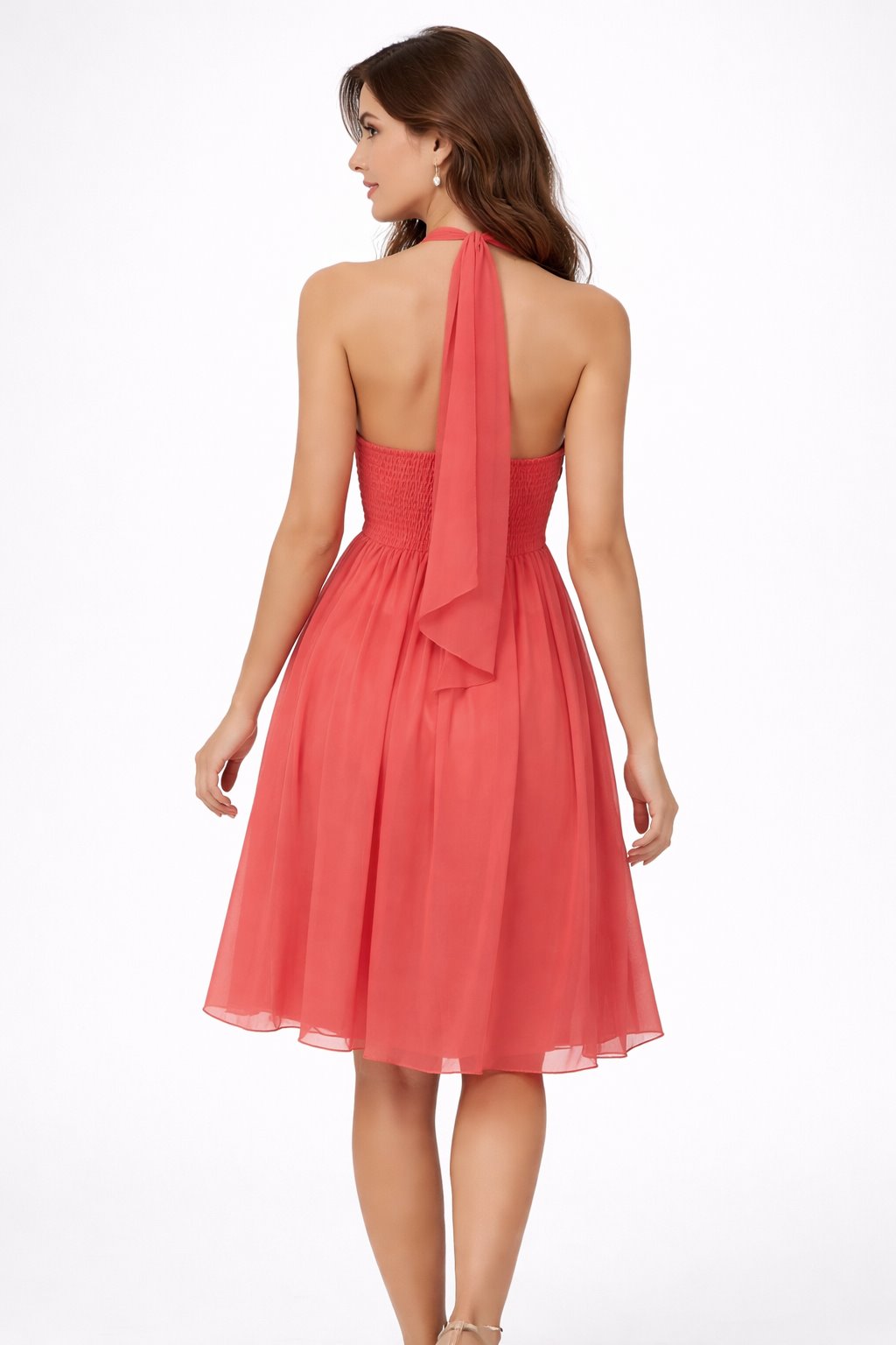 RÓŻOWA ZWIEWNA SUKIENKA Z WIĄZANIEM