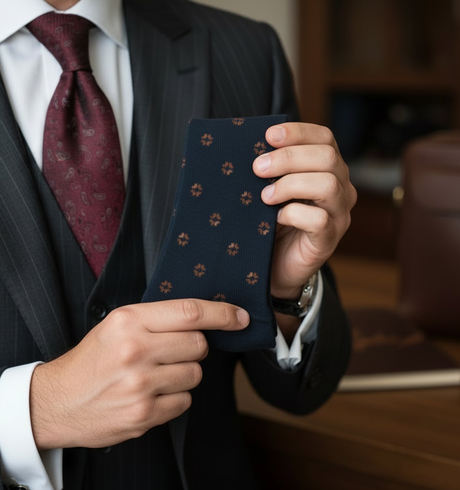- Skarpety Granatowe Męskie Eleganckie w Drobny Wzór to stylowy i komfortowy wybór do garnituru oraz klasycznych butów, podkreślający elegancję męskiej stylizacji.
