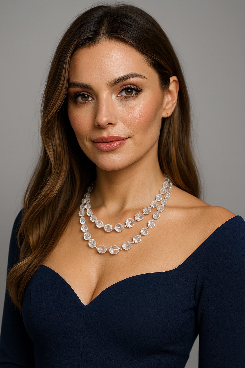 Elegancki naszyjnik podwójny z przezroczystych kryształów to propozycja dla miłośniczek subtelnego blasku. Dwie warstwy fasetowanych kryształów w delikatnym srebrnym odcieniu tworzą modny, warstwowy efekt, który pięknie podkreśla dekolt.